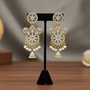 Antique Gold Floral Long Earrings Combo for Women & Girls, Mirror Cutwork Earrings + Designer Diamond-Shaped Red Beaded Earrings | Festive & Wedding Wear Jewelry Set.