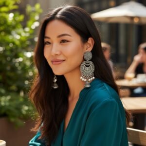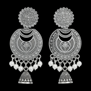 Jhumka ethnic earrings featuring oxidized silver danglers